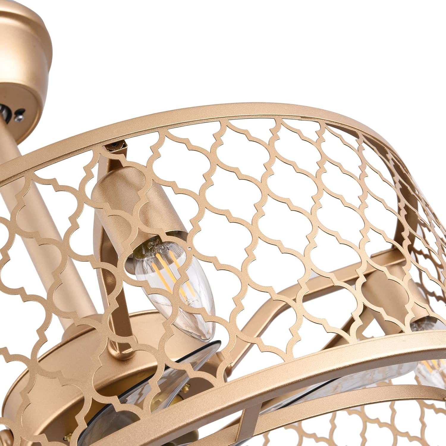 ✦DimensionsFixture Height: 7.87" (20 cm)Fixture Width: 20" (50cm)✦Bulb InformationBulb requirements: use (4) E27bulbs, maximum 60watts, options include incandescent, fluorescent, LED, halogen, etc. (bulbs are not included)Wattage: Max 60WVoltage: AC110-120VRemote control: yes✦Material and ColorMaterial: Retro metalColor: GoldPackage Included:1 *Fan Light (Bulbs Not Included)2*Down rods (12CM & 25CM)1 * Accessories package1 * User Manual