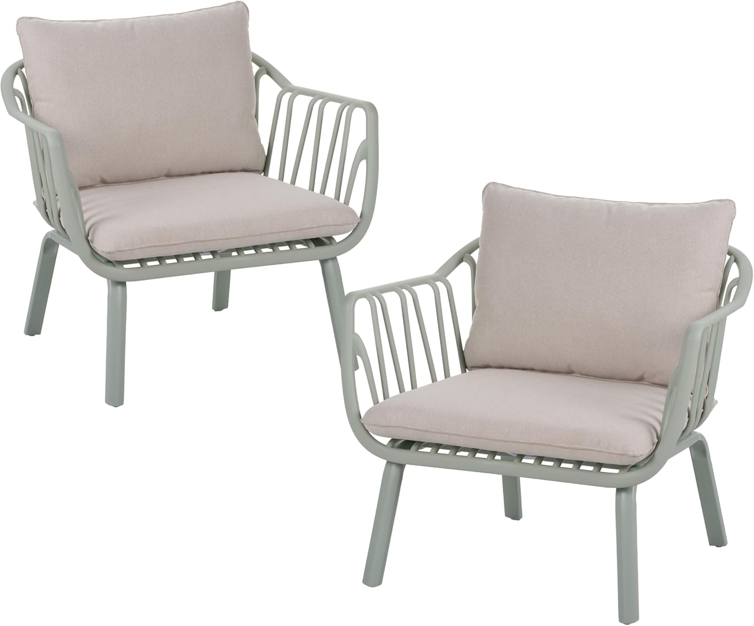 | Item Type Name | Set of 2 Huron Indoor/Outdoor Polypropylene and Iron Frame Club Chairs, Patio Conversation Seating/Armchair for Garden, Backyard, Poolside, Removable Cushions |