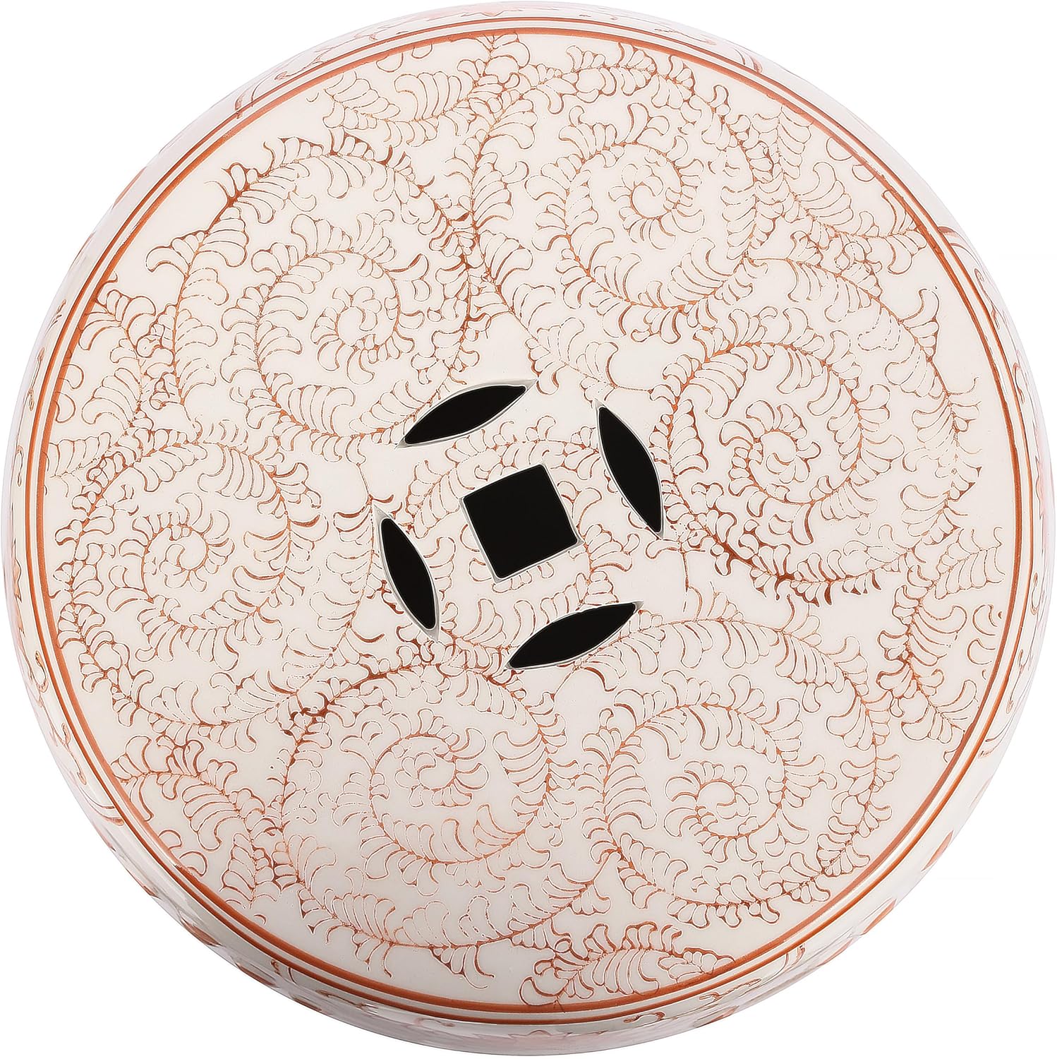 Our drum-shaped ceramic Chinese garden stool brings good fortune, with its Double Happiness symbol and morning glory vines. Timelessly chic, orange and white Chinoiserie garden seats are loved by Maximalists and Hollywood Regency fans alike. Use them indoors or outside as a cocktail table, garden seat, or plant stand.
