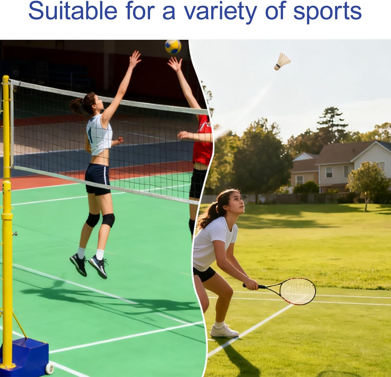 This product is a highly stable, height-adjustable, and quickly switchable multi-functional sports netting system designed for both indoor and outdoor use.—Suitable for various scenarios including school physical education, community fitness, parks and squares, and home courtyards. One set of equipment can meet the training and competition needs of four sports.- Product Specifications:* Name: Volleyball Net Pole Set* Material: Steel pole + Net* Adjustable Height: 1.07-2.43m / 3.5-8ft* Base Dimensions:Small base: 50*30*23cm / 20*12*9inMedium base: 50*30*30cm / 20*12*12inLarge base: 60*40*30cm / 24*16*12in* Base Filling: Pebbles, Sand* Applicable Scope: Indoor/OutdoorPackage List:2 x Adjustable Pole2 x Base1 x Volleyball Net1 x Badminton Net- Product Features:- One set of stands allows for easy switching between sports modes by adjusting the height and changing the net.- Equipped with braked PU casters, allowing for easy single-person movement.- Powder-coated surface, rust-resistant, suitable for long-term outdoor use.- Sand can be added to the base for enhanced wind resistance.- Independent design, assembly takes only minutes.- The badminton net frame can be tightened via mechanical pulleys, thus securing the net in place.