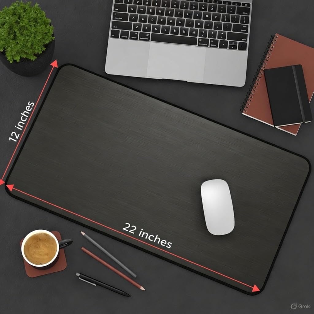 Elevate your workspace with this brushed metal texture desk mat in a versatile 12x22 inch size. This extended mouse pad offers the perfect balance of coverage and compactness—ideal for smaller desks, laptops, or setups where space is at a premium, while still accommodating your full keyboard and mouse with room to spare.The realistic brushed black metal print on premium neoprene creates a sophisticated, high-tech look that enhances any environment, from home offices to gaming stations. Enjoy smooth, precise cursor control and all-day comfort without fatigue.Engineered for durability and stability: The non-slip rubber base anchors it securely to your desk, and stitched edges prevent peeling or fraying over time. Spill-resistant and easy to clean—just wipe with a damp cloth.Whether you're a gamer seeking a reliable medium gaming mouse pad, a professional needing an office desk pad protector, or anyone wanting stylish desk protection, this mat delivers. Pair with our larger or smaller sizes for the perfect fit.