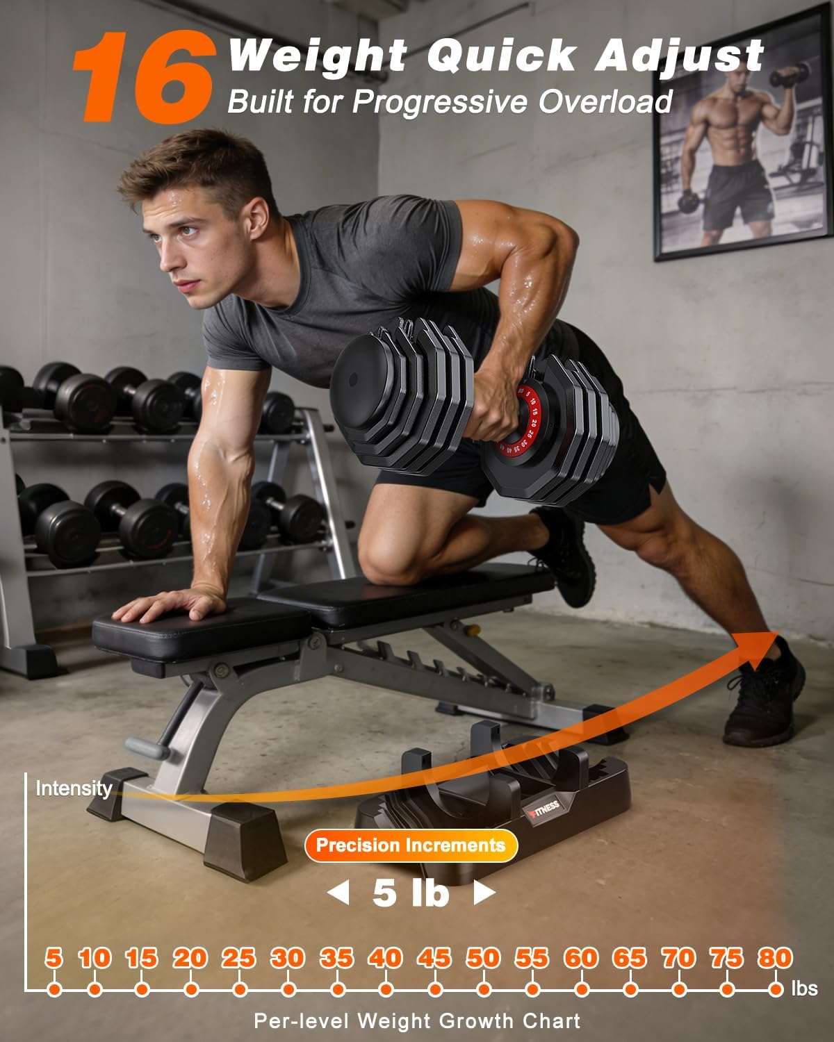 | Other Special Features of the Product | 1 Hand Quick Adjust Dumbbell Set, 16 in 1 Adjustable Dumbbells Set, 2x80LB Adjustable Weight Set (Each includes 5/10/15/20/25/30/35/40/45/50/55/60/65/70/75/80LBS), Non-Slip Weight Dumbbell Set, With Deep knurled handle Adjustable Weights Dumbbells |