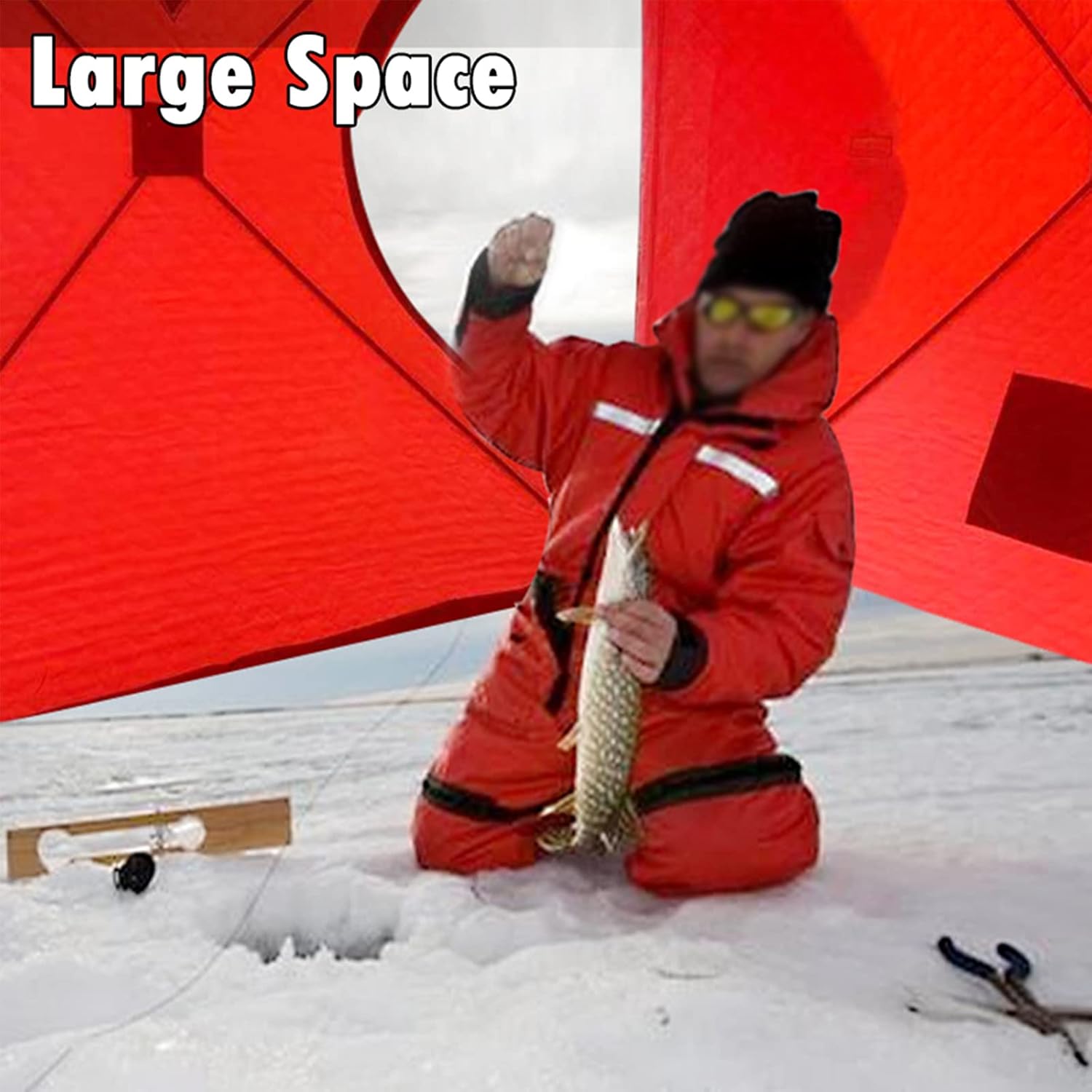 🐟Features:Hub design makes it quick to set up and take down.Made of oxford cloth with waterproof coating, waterproof, windproof and warm keeping.Thick cotton filling prevents cold wind and keeps you warm.Removable windows give clear views outside and good venting.Great for ice fishing, camping, hunting, dressing, showering, etc.Comes with a carry bag for easy transport.🐟Specifications:Shelter Material: Three Layer (Cotton and 210D Oxford Cloth)Pole Material: Fiberglass Color: Orange,Red,BlueSize:Approx.200*200*210cm/78.74*78.74*82.68in Function: Suitable for 3-4persons ice fishing🐟Package List:1 * Ice Fishing Shelter4 * Peg4 * Rope1 * Packing Bag🐟Notes:Due to the light and screen setting difference, the item's color may be slightly different from the pictures.Please allow slight dimension difference due to different manual measurement.