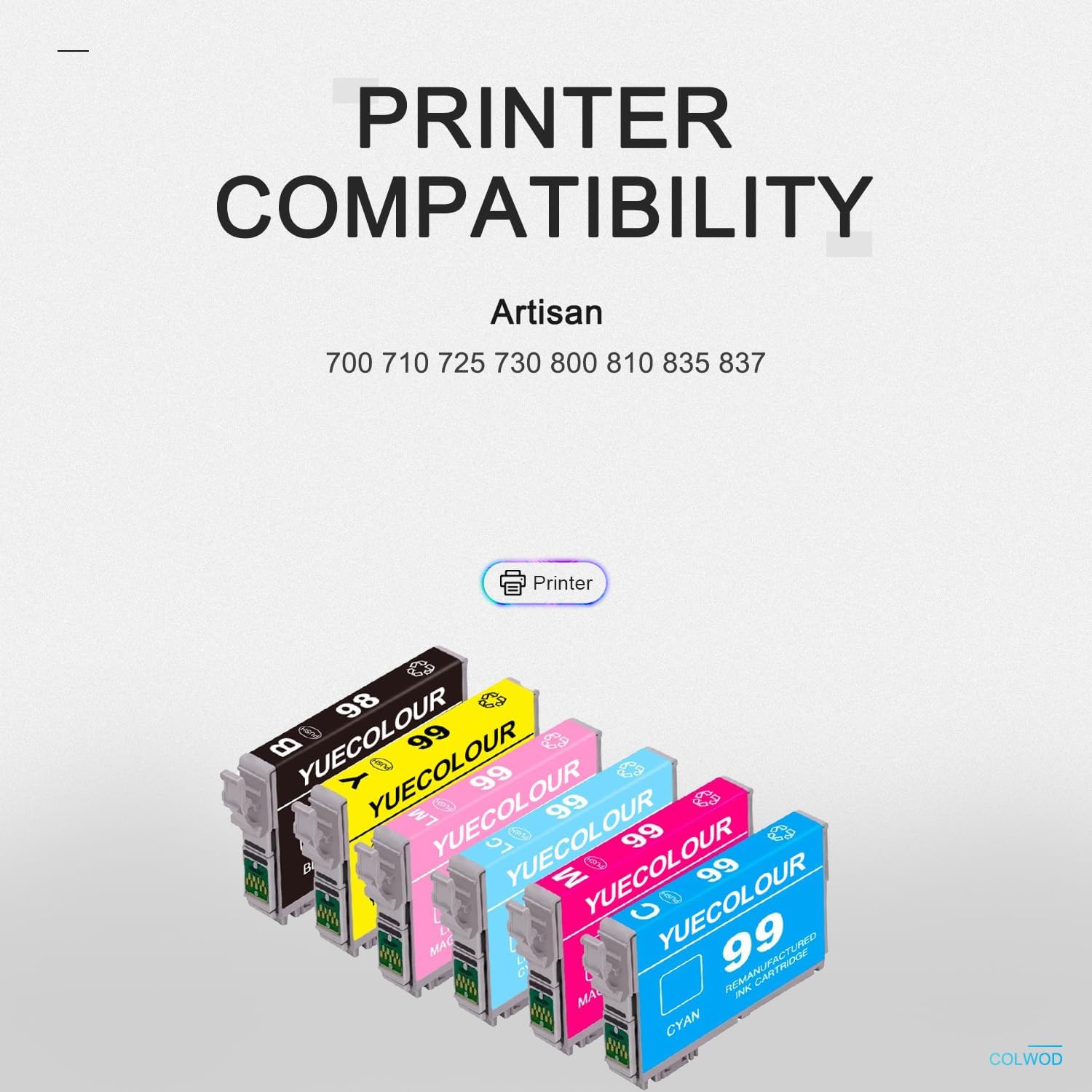 98 99 Ink Cartridges Combo Pack Replacement for T098 099 Work with Artisan 700 725 710 810 837 Printer (1 Black 1 Cyan 1 Magenta 1 Yellow 1 Light Magenta 1 Light Cyan)
