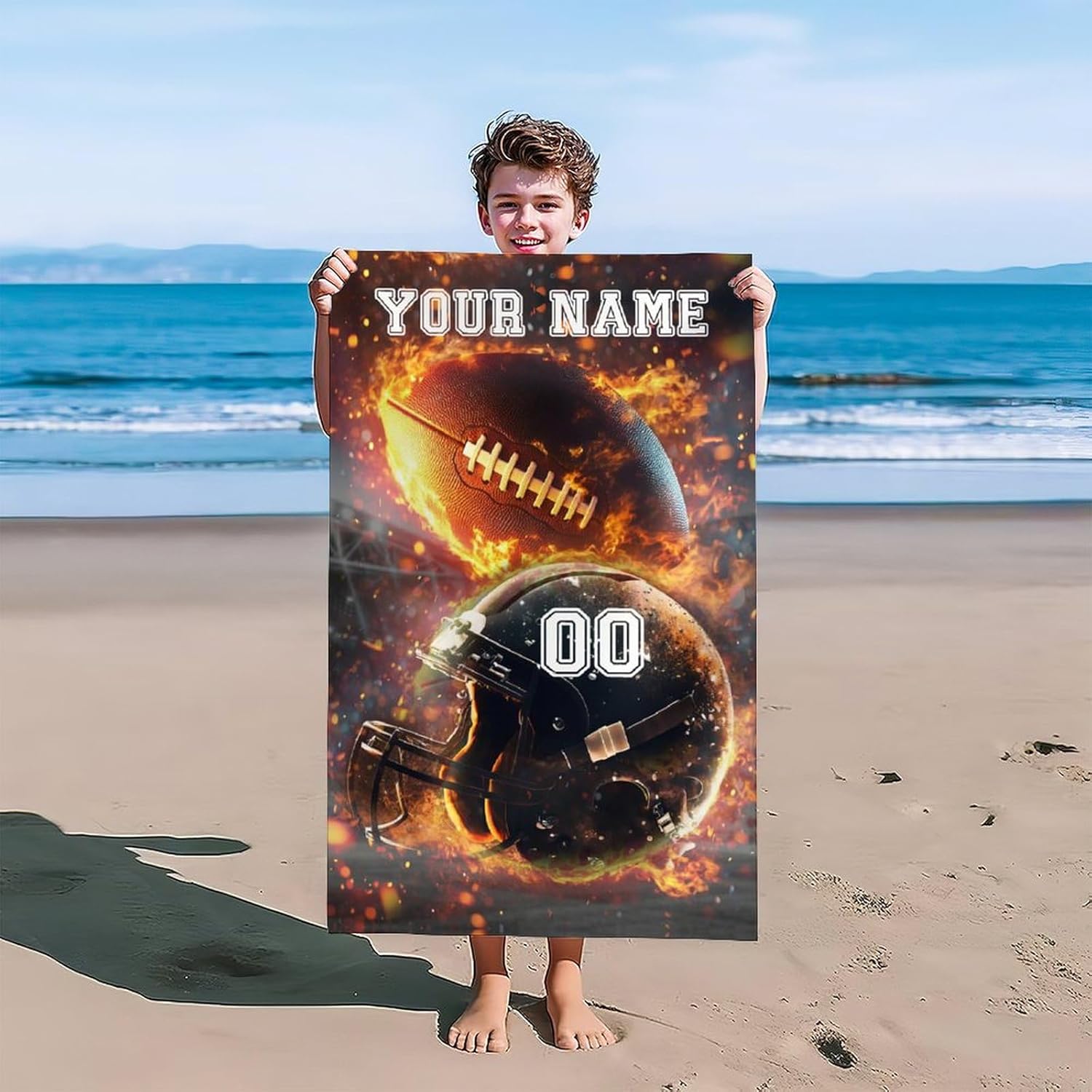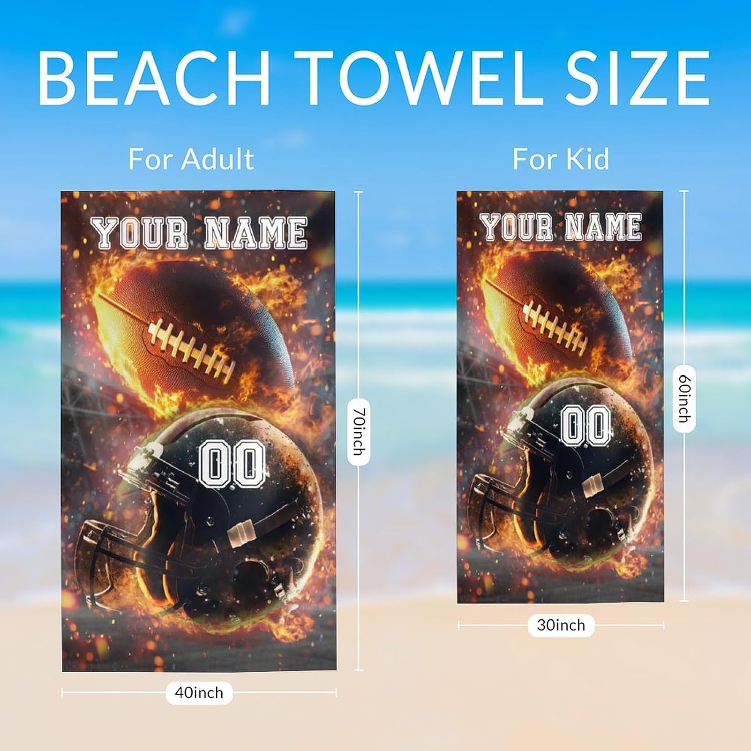 Custom Beach Towel for Adults - Soft Quick-Dry Microfiber Football Bath Towels for Men - 40" x 70" Oversized Sandless Beach Vacation Essentials for Travel, Camping, Pool