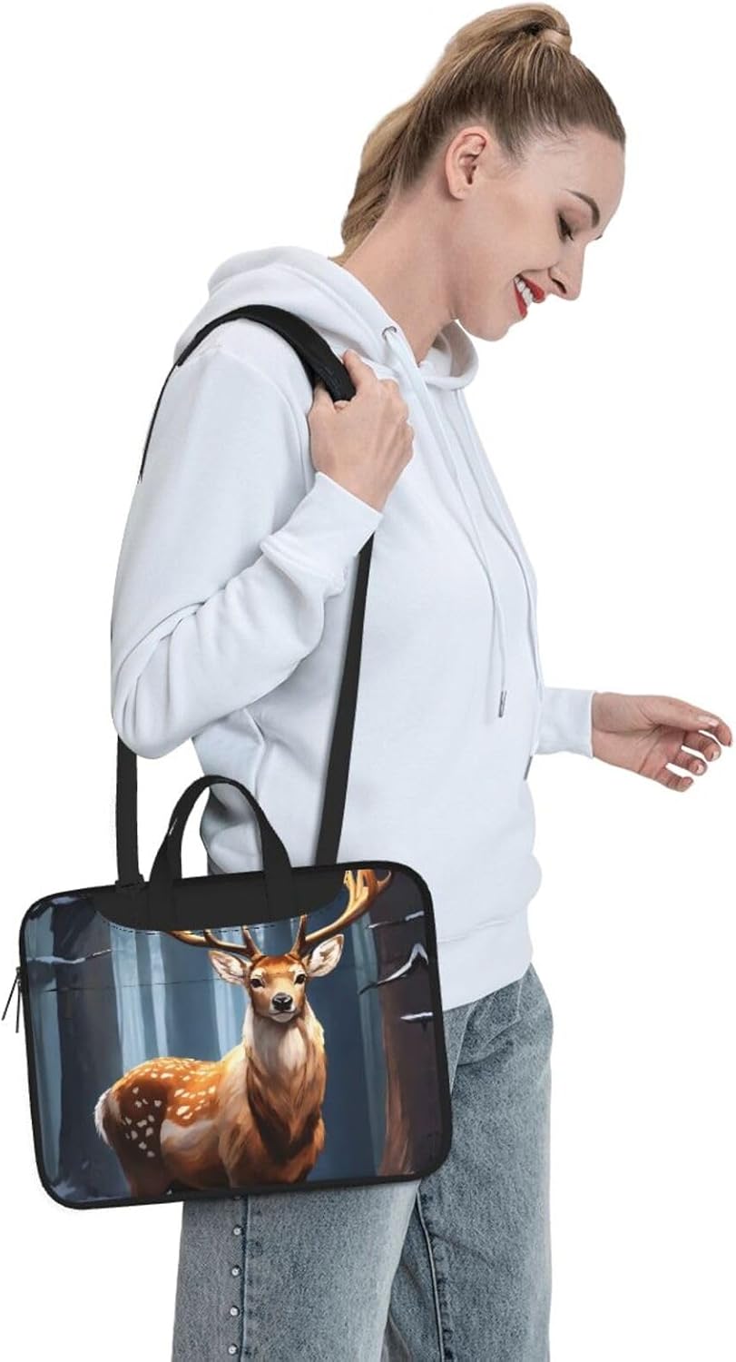 Our deer Print computer messenger bag is the exquisite accessory for your daily work or travel needs.Designed with a sleek and modern look, our laptop shoulder bag is made from Oxford cloth materials to ensure durability and longevity. The main compartment of the slim computer bag for laptop is secured with a smooth zipper closure, and inside you'll find a separate laptop compartment that can comfortably accommodate laptops, computers, or tablets. On both sides of the laptop bag, there are deep pockets that provide additional storage space. It's not just a computer bag, you can use it as a shoulder bag, crossbody bag, and briefcase at will. The design of the rear belt frame is reasonable and easy to use during business trips. It is a great gift for your family and friends when birthday, Christmas, Mother's day, Father's day and Thanksgiving.
