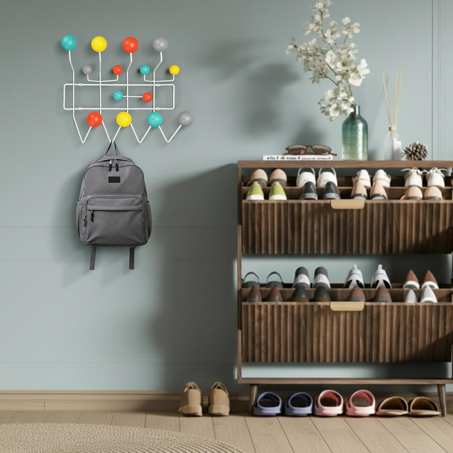 Features: Easy to match: The vibrant colors and slight variations in the wooden balls highlight the human touch involved in its creation, making the mid century coat rack not just an organizational tool, but a curated art piece for your wall. Specifications: Material: steel and wood Color: multi colors Size: about 14 x 19 inches/ 36 x 49 cm Package includes: 1 x Mid century coat rack Notes: Manual measurement, please allow slight errors on size. The color may exist a slight difference due to different screen displays