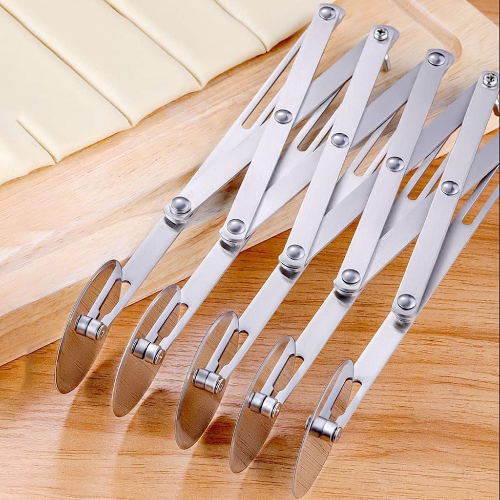 Pizza is delicious, but cutting with a knife set is a nightmare. Having a pizza cutter can give you efficiency.Product name: Pizza cutterMaterial: Stainless steelColor: silverSpecifications: 3 rounds, 5 rounds, 7 roundsSize: 3/5 wheels are about 9.56 inches (24.3 cm) long, 7 wheels are about 9.64 inches (24.5 cm) longWeight: 3 rounds about 244 grams, 5 rounds about 425.5 grams, 7 rounds about 625 gramsTips:1. Due to manual measurement, some small errors may occur, please refer to the actual product, thank you.2. Due to the different shooting angle and light, there may be slight chromatic aberration, please understand.3. If you find any problems with our products, please feel free to contact us via email, we will solve the problem as soon as possible.4. Welcome to share and feedback so that we can provide you with better products and services.5. There are other products in this shop, you are welcome to visit again!
