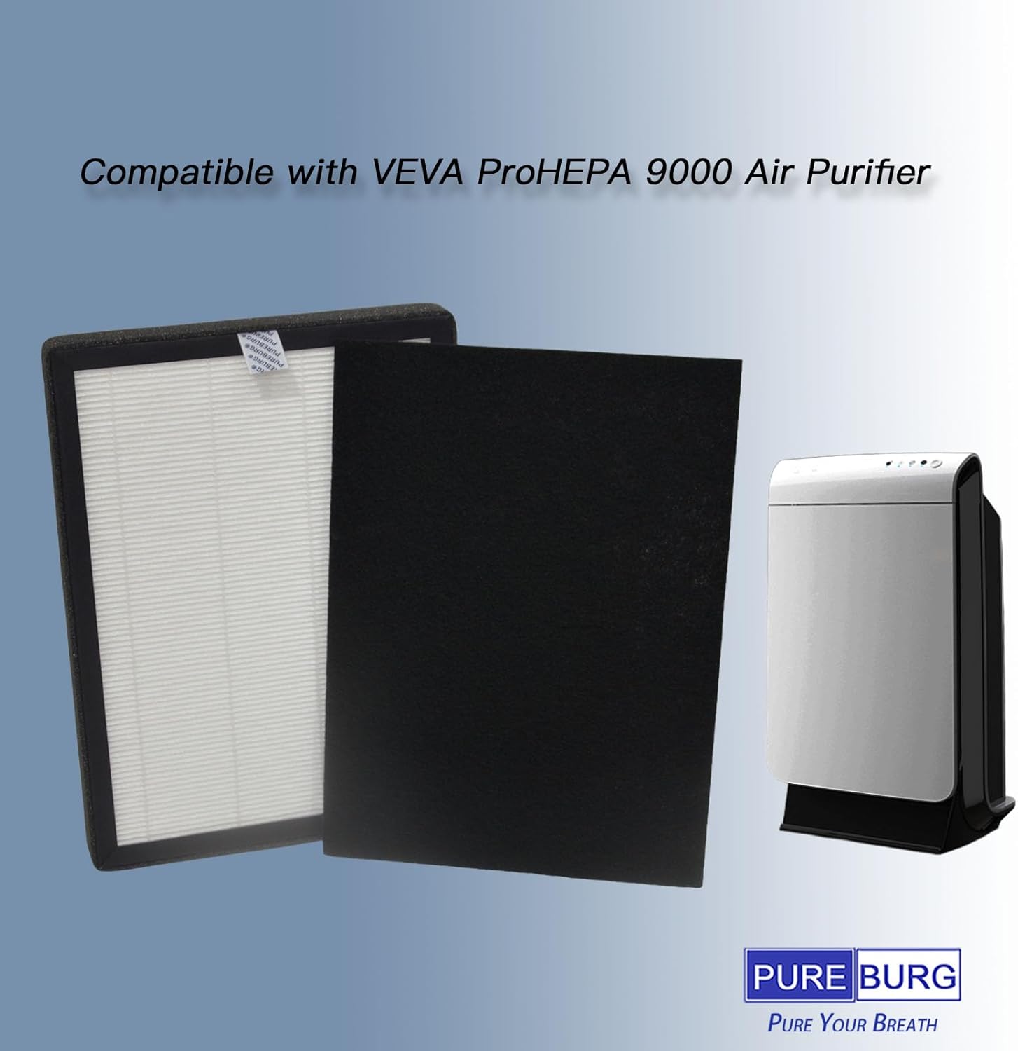 PUREBURG Air Filter Compatible with VEVA ProHEPA 9000 Air Purifier ,4-Pack H13 HEPA & 12 Activated Carbon For Air Clean Dust VOCs Odor Replacement Disclaimer: This product is a generic item that is designed to replace the original part. Any brand names or logos are the registered trademarks of their respective owners. Any use of any brand name or model designation for this product is made solely for purposes of demonstrating compatibility. . PUREBURG - Pure Your Breath! We value your satisfaction. If you have any problems using our product, please always contact us.