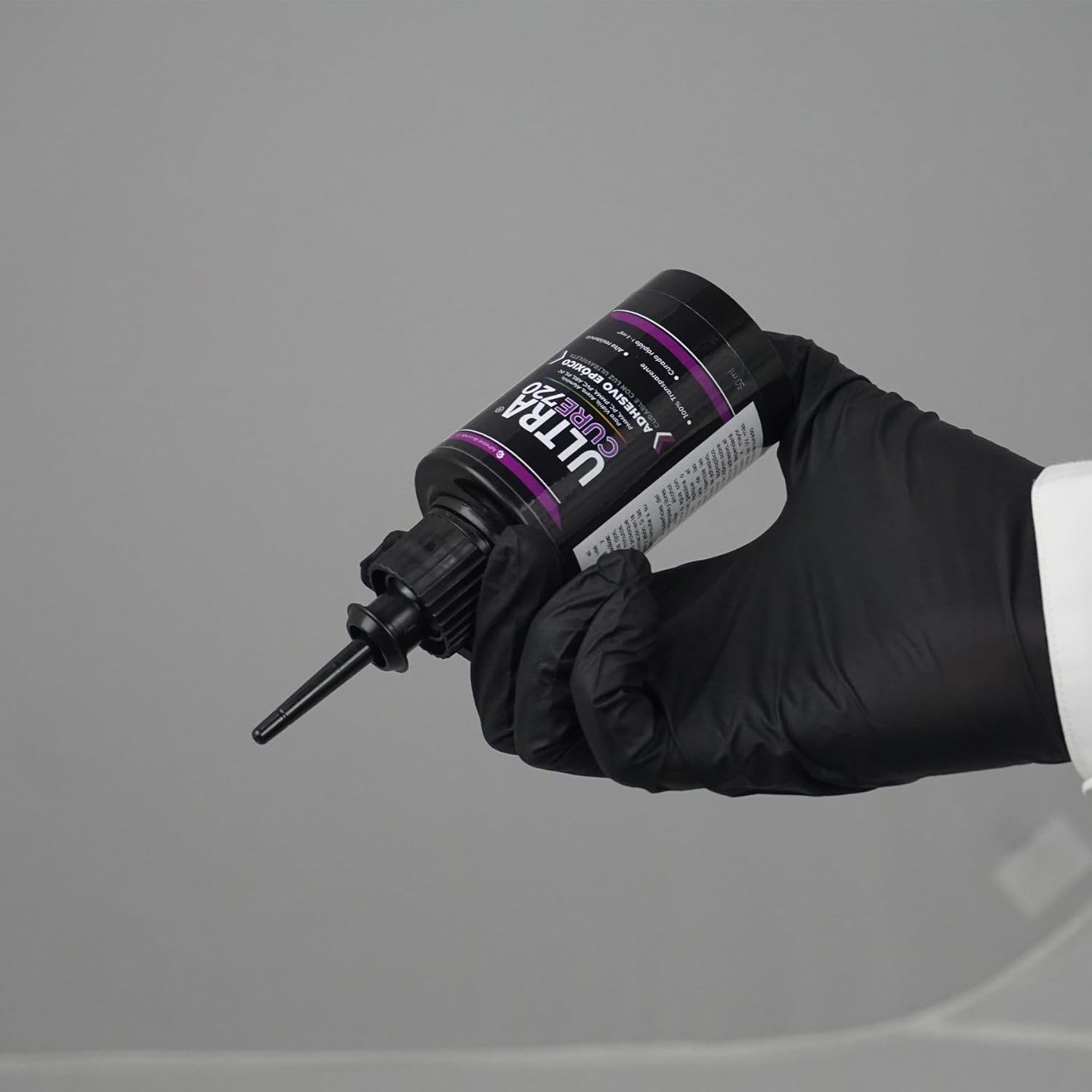1 component epoxy UV glue. Impact resistant, good water resistance, low shrinkage, crystal clear, suitable for glass, steel, aluminum, PMMA, PVC, ABS, PS and PC. Tensile strength 20N/mm², operating temperature -30℃~135℃. The curing time depends on the power of the UV equipment used, amount of adhesive applied, light exposure distance, thickness and transparency of the substrate.