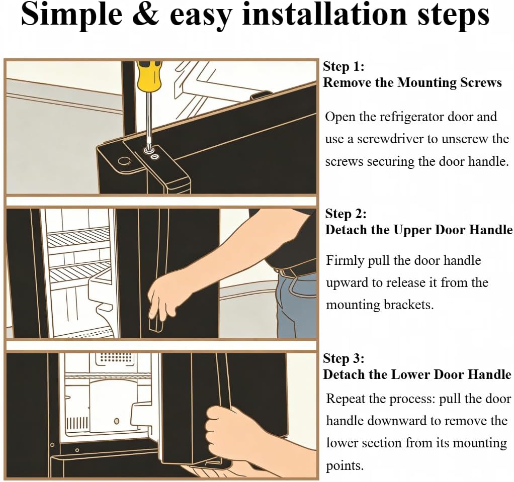Product Description Upgrade your refrigerator’s look and functionality with WR12X32350 Refrigerator Door Handle Replacement. Handle restores smooth door operation and enhances your kitchen’s aesthetics Each handle is crafted from high-quality metal, offering excellent durability, wear resistance, and a firm grip. Whether your old handle is broken, missing, or discolored, replacement set provides a perfect fit and lasting reliability Key Features: Replaces part numbers: WR12X32350, 5304504509, 5304504510, 4959569, AP6985343, PS12749320, EAP12749320 Fits for GE refrigerator GIE18CTHDRBB GIE18CTHERBB GIE18CTHGRBB GE18CTHHRBB GIE18CTHLRBB GIE18CTHMRBB GIE18ETHCRBB GIE18ETHDRBB GIE18ETHERBB GIE18ETHHRBB GIE18ETHSRBB GIE18GCHBRSA GIE18GCHDRSA GIE18GCHERSA GIE18GCHGRSA GIE18GCHHRSA GIE18GCHLRSA GIE18GTHBRBB GIE18GTHDRBB GIE18GTHERBB GIE18GTHGRBB GIE18GTHHRBB GIE18GTHLRBB GIE18HGHBRBB GIE18HGHDRBB GIE18HGHERBB GIE18HGHGRBB GIE18HGHHRBB GIE18HGHLRBB GIE18HGHMRBB GTE15CTHBRBB GTE15CTHCRBB GTE15CTHHRBB GTE15CTHLRBB Premium metal material: Resistant to bending, rust, and corrosion Simple DIY installation: No special tools required, just screw on and tighten Includes 2× refrigerator door handles for convenient replacement estore comfort and convenience to your kitchen — open and close your fridge effortlessly again with reliable, long-lasting door handle set